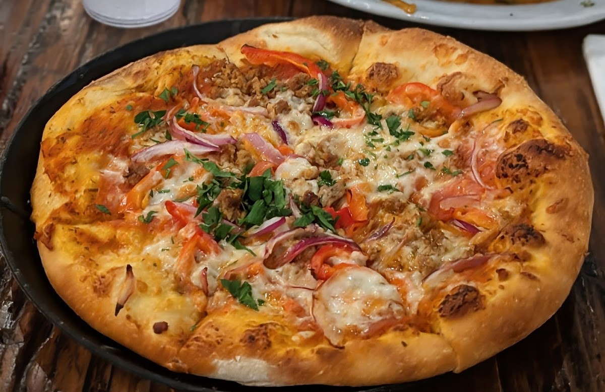 The menu leans heavily into inventive pizza toppings and combinations, like the California Sunrise or the Tikka Masala Pizza, appealing to those who want something a bit beyond the typical slice. The personal pan size makes it easy to try a couple different options, and the crust strikes a balance between light and crisp without being too thin or doughy. For non-pizza eaters or salads lovers, dishes like the Cobb Salad or Mulligatawny Soup add a solid range of choices without overshadowing the focus on their signature pies.